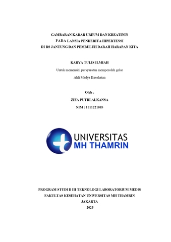 Zifa, Putri Alkansa (2025) Gambaran Kadar Ureum dan Kreatinin pada Lansia Penderita Hipertensi di RS Jantung dan Pembuluh Darah Harapan Kita. Diploma thesis, Universitas Mohammad Husni Thamrin.