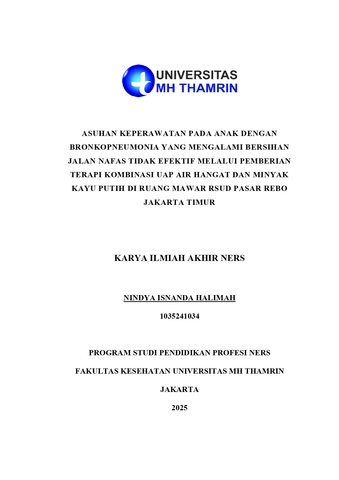 Nindya, Isnanda Halimah (2025) Asuhan Keperawatan pada Anak dengan Bronkopneumonia yang Mengalami Bersihan Jalan Nafas tidak Efektif Melalui Pemberian Terapi Kombinasi Uap Air Hangat dan Minyak Kayu Putih di Ruang Mawar RSUD Pasar Rebo Jakarta Timur. Other thesis, Universitas Mohammad Husni Thamrin.