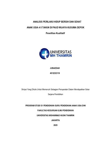 Jubaedah, Jubaedah (2025) Analisis Perilaku Hidup Bersih dan Sehat Anak Usia 4 - 5 Tahun di PAUD Wijaya Kusuma Depok. Other thesis, Universitas Mohammad Husni Thamrin.