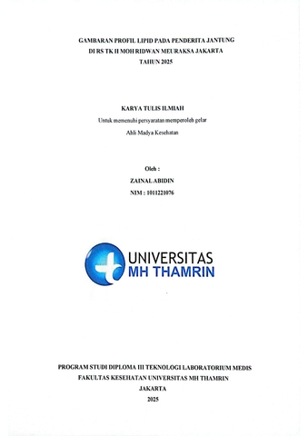 Zainal, Abidin (2025) Gambaran Profil LIPID pada Penderita Jantung di RS TK II Moh Ridwan Meuraksa Jakarta Tahun 2025. Diploma thesis, Universitas Mohammad Husni Thamrin.
