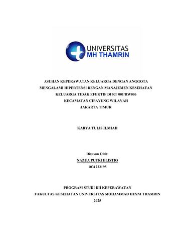 Nazua, Putri Elistio (2025) Asuhan Keperawatan Keluarga dengan Anggota Mengalami Hipertensi dengan Manajemen Kesehatan Keluarga tidak Efektif di RT 001/RW 006 Kecamatan Cipayung Wilayah Jakarta Timur. Diploma thesis, Universitas Mohammad Husni Thamrin.