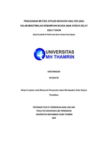 Kristiningsih, Kristiningsih (2025) Penggunaan Metode Applied Behavior Analysis (ABA) dalam Menstimulasi Kemampuan Bicara Anak Speech Delay Usia 3 Tahun. Other thesis, Universitas Mohammad Husni Thamrin.