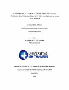 Sukma, Cahya Kaliandra (2025) Uji Daya Hambat Ekstrak Kulit Jeruk Bali (Citrus maxima) terhadap Bakteri Escherichia coli ATCC 35218 dan Staphylococcus aureus ATCC BAA-1026. Diploma thesis, Universitas Mohammad Husni Thamrin.