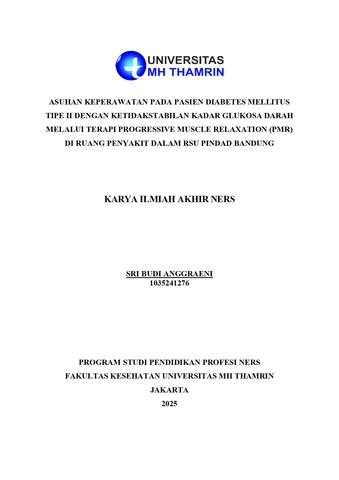 Sri, Budi Anggraeni (2025) Asuhan Keperawatan pada Pasien Diabetes Mellitus Tipe II dengan Ketidakstabilan Kadar Glukosa Darah Melalui Terapi Progressive Muscle Relaxation (PMR) di Ruang Penyakit dalam RSU Pindad Bandung. Other thesis, Universitas Mohammad Husni Thamrin.