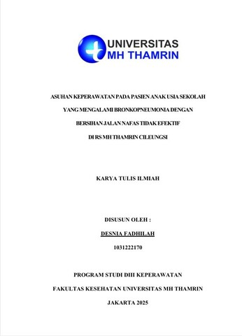 Desnia, Fadhilah (2025) Asuhan Keperawatan pada Pasien anak Usia Sekolah yang Mengalami Bronkopneumonia dengan Bersihan Jalan Nafas tidak Efektif di RS MH Thamrin Cileungsi. Diploma thesis, Universitas Mohammad Husni Thamrin.