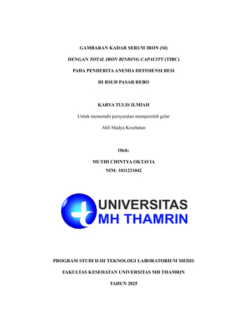 Muthi, Chintya Oktavia (2025) Gambaran Kadar Serum Iron (SI) dengan Total Iron Binding Capacity (TIBC) pada Penderita Anemia Defisiensi Besi di RSUD Pasar Rebo. Diploma thesis, Universitas Mohamad Husni Thamrin.