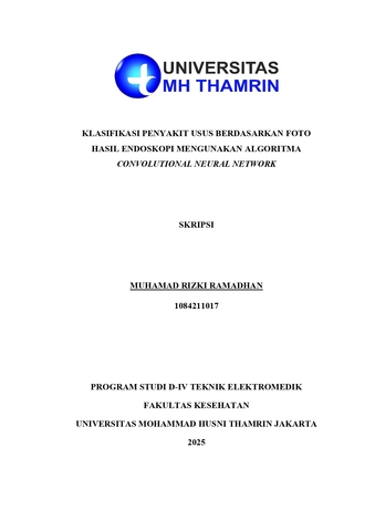 Muhamad Rizki, Ramadhan (2025) Klasifiaksi Penyakit Usus Berdasarkan Foto Hasil Endoskopi Menggunakan Algoritma Convolutional Neural Network. Other thesis, Universitas Mohammad Husni Thamrin.
