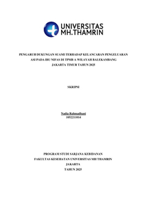 Nadia, Rahmadhani (2025) Pengaruh Dukungan Suami terhadap Kelancaran Pengeluaran Asi pada Ibu Nifas di TPMB A Wilayah Balekambang Jakarta Timur Tahun 2025. Other thesis, Universitas Mohammad Husni Thamrin.