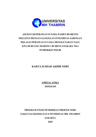 Amelia, Atika (2025) Asuhan Keperawatan pada Pasien Diabetes Mellitus dengan Gangguan Integritas Jaringan Melalui Perawatan Luka Menggunakan NaCl 0,9% di Ruang Mahoni 1 RS Bhayangkara TK.I Pusdokkes Polri. Other thesis, Universitas Mohammad Husni Thamrin.