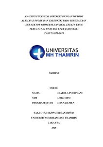 Nabela, Indriyani (2025) Analisis Financial Distress dengan Metode Altman Z-Score dan Zmijewski pada Perusahaan Sub-Sektor Properti dan Real Estate yang Tercatat di PT. Bursa Efek Indonesia Tahun 2021 - 2023. Other thesis, Universitas Mohammad Husni Thamrin.