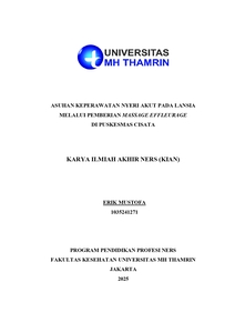 Erik, Mustofa (2025) Asuhan Keperawatan Nyeri Akut pada Lansia Melalui Pemberian Massage Effleurage di Puskesmas Cisata. Other thesis, Universitas Mohammad Husni Thamrin.