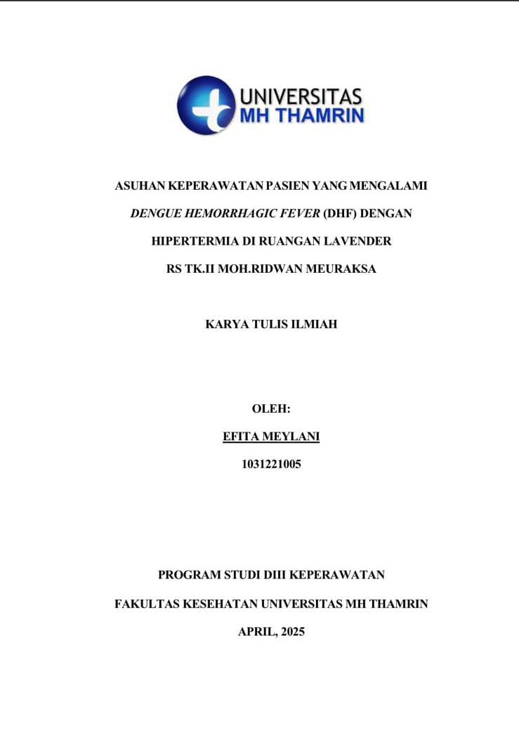 Efita, Meylani (2025) Asuhan Keperawatan Pasien yang Mengalami Dengue Hemorrhagic Fever (DHF) dengan Hipertermia di Ruangan Lavender RS TK.II Moh. Ridwan Meuraksa. Diploma thesis, Universitas Mohammad Husni Thamrin.