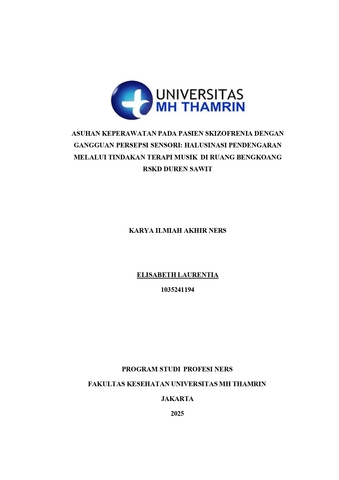 Elisabeth, Laurentia (2025) Asuhan Keperawatan pada Pasien Skizofrenia dengan Gangguan Persepsi Sensori: Halusinasi Pendengaran Melalui Tindakan Terapi Musik di Ruang Bengkoang RSKD Duren Sawit. Other thesis, Universitas Mohammad Husni Thamrin.