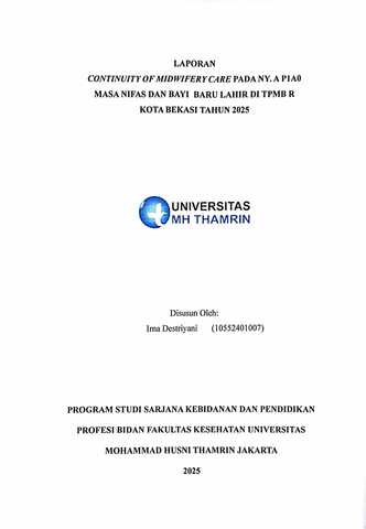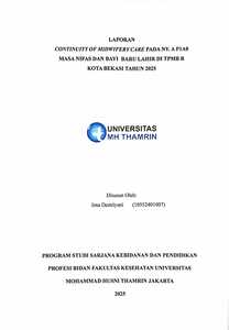 Irna, Destriyani (2025) Laporan Continuity of Midwifery Care pada Ny. A P1A0 Masa Nifas dan Bayi Baru Lahir di TPMB R Kota Bekasi Tahun 2025. Other thesis, Universitas Mohammad Husni Thamrin.