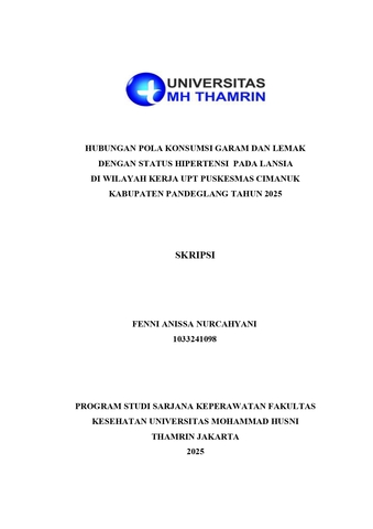 Fenni, Anissa Nurcahyani (2025) Hubungan Pola Konsumsi Garam dan Lemak dengan Status Hipertensi pada Lansia di Wilayah Kerja UPT Puskesmas Cimanuk Kabupaten Pandeglang Tahun 2025. Other thesis, Universitas Mohammad Husni Thamrin.