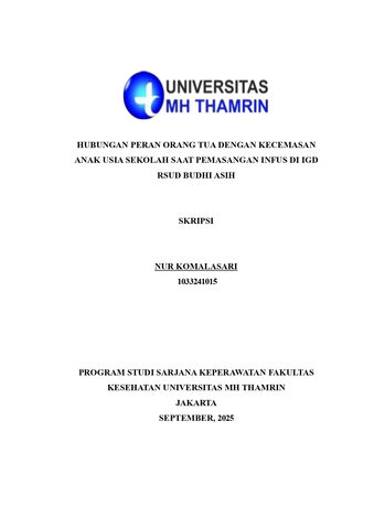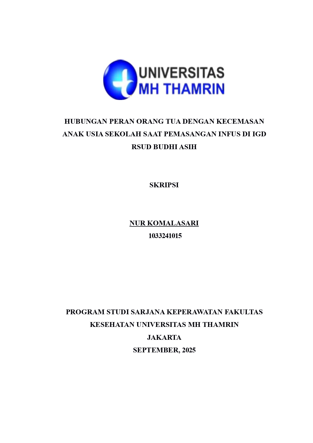 Nur, Komalasari (2025) Hubungan Peran Orang Tua dengan Kecemasan Anak Usia Sekolah Saat Pemasangan Infus di IGD RSUD Budhi Asih. Other thesis, Universitas Mohammad Husni Thamrin.