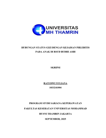 Rati, Dwi Yuliana (2025) Hubungan Status Gizi dengan Kejadian Phlebitis pada Anak di RSUD Budhi Asih. Other thesis, Universitas Mohammad Husni Thamrin.
