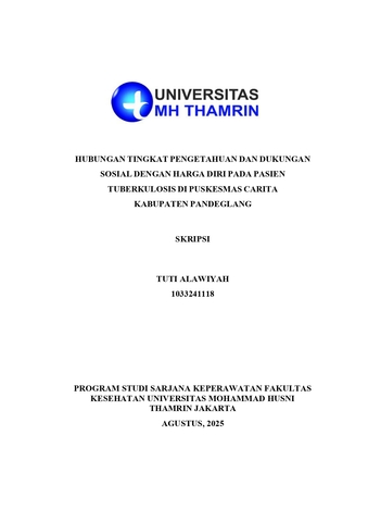 Tuti, Alawiyah (2025) Hubungan Tingkat Pengetahuan dan Dukungan Sosial dengan Harga Diri pada Pasien Tuberkulosis di Puskesmas Carita Kabupaten Pandeglang. Other thesis, Universitas Mohammad Husni Thamrin.