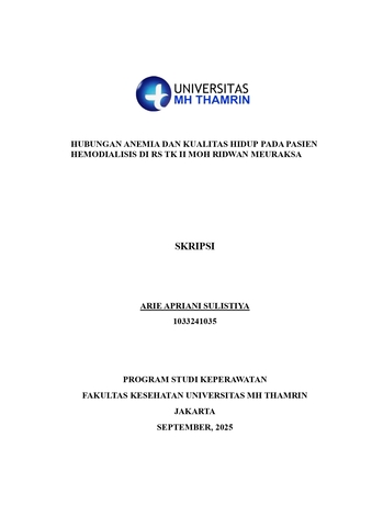 Arie, Apriani Sulistiya (2025) Hubungan Anemia dengan Kualitas Hidup pada Pasien Hemodialisis di RS TK II Moh Ridwan Meuraksa. Other thesis, Universitas Mohammad Husni Thamrin.