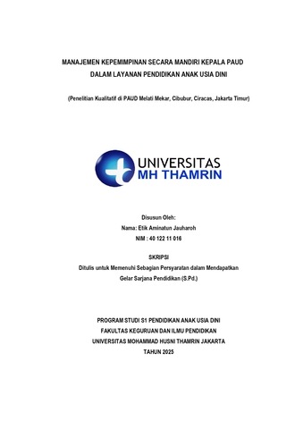 Etik, Aminatun Jauharoh (2025) Manajemen Kepemimpinan Secara Mandiri Kepala PAUD dalam Layanan Pendidkan Anak Usia Dini. Other thesis, Universitas Mohammad Husni Thamrin.