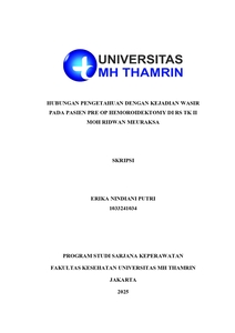 Erika, Nindiani Putri (2025) Hubungan Pengetahuan dengan Kejadian Wasir pada Pasien Pre Operasi Hemoroidektomy di RS TK II Moh Ridwan Meuraksa. Other thesis, Universitas Mohammad Husni Thamrin.