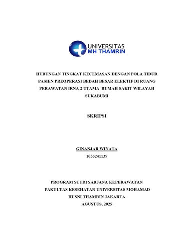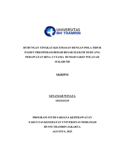 Ginanjar, Winata (2025) Hubungan Tingkat Kecemasan dengan Pola Tidur Pasien Preoperasi Besar Elektif di Ruang Perawatan Irna 2 Utama Rumah Sakit Wilayah Sukabumi. Other thesis, Universitas Mohammad Husni Thamrin.