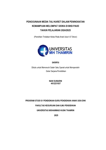 Nani, Sumarni (2025) Penggunaan Media Tali Karet dalam Peningkatan Kemampuan Melompat Siswa di BKB PAUD Tahun Pelajaran 2024/2025. Other thesis, Universitas Mohammad Husni Thamrin.