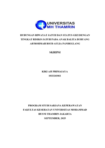 Kiki, Aji Primajaya (2025) Hubungan Riwayat Jatuh dan Status Gizi dengan Tingkat Risiko Jatuh pada Anak Balita di Ruang Ar'rohmah RSUD Aulia Pandeglang. Other thesis, Universitas Mohammad Husni Thamrin.