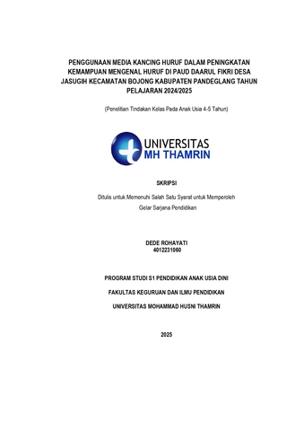 Dede, Rohayati (2025) Penggunaan Media Kancing Huruf dalam Peningkatan Kemampuan Mengenal Huruf di PAUD Daarul Fikri Desa Jasugih Kecamatan Bojong Kabupaten Pandeglang Tahun Palajaran 2024/2025. Other thesis, Universitas Mohammad Husni Thamrin.