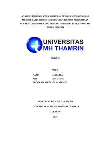 Adelita, Adelita (2025) Analisis Prediksi Kebangkrutan dengan Menggunakan Metode Taffler dan Metode Grover pada Perusahaan Sub Sektor Rokok yang Tercatat di Bursa Efek Indonesia Tahun 2021-2024. Other thesis, Universitas Mohammad Husni Thamrin.