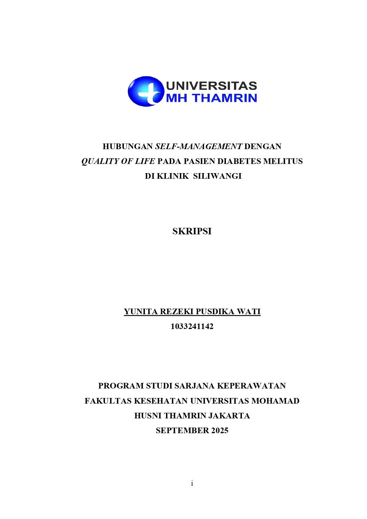 Yunita, Rezeki Pusdika Wati (2025) Hubungan Self-Management dengan Quality of Life pada Pasien Diabetes Melitus di Klinik Siliwangi. Other thesis, Universitas Mohammad Husni Thamrin.
