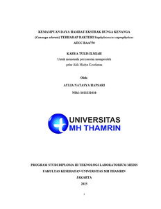 Aulia, Natasya Hapsari (2025) Kemampuan Daya Hambat Ekstrak Bunga Kenanga (Cananga odorata) terhadap Bakteri Staphylococcus saprophyticus ATCC BAA750. Diploma thesis, Universitas Mohamad Husni Thamrin.