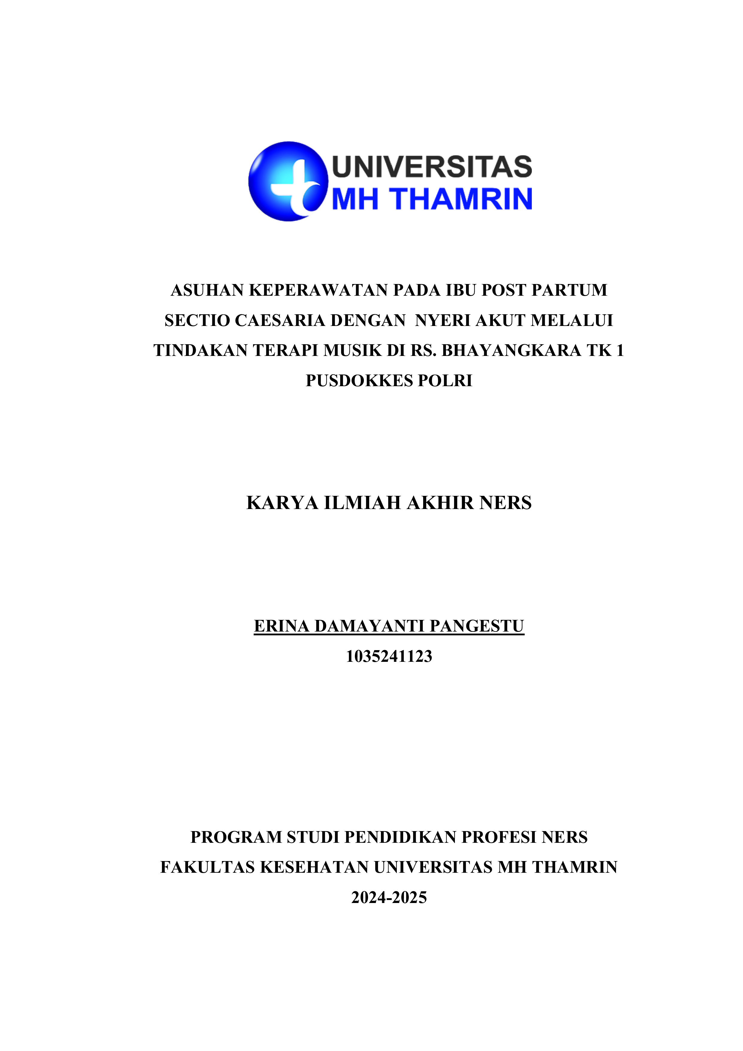 Erina Damayanti, Pangestu (2025) Asuhan Keperawatan pada Ibu Post Partum Sectio Caesarea dengan Nyeri Akut Melalui Tindakan Terapi Musik di RS Bhayangkara TK.IPusdokkes Polri. Other thesis, Universitas Mohammad Husni Thamrin.
