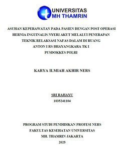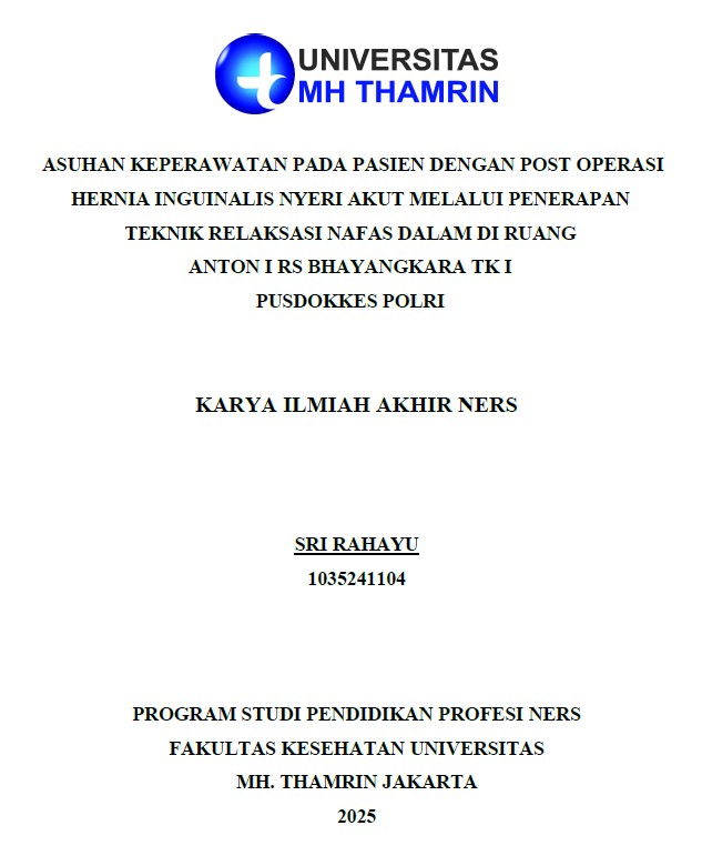 Sri, Rahayu (2025) Asuhan Keperawatan pada Pasien dengan Post Operasi Hernia Inguinalis Nyeri Akut Melalui Penerapan Teknik Relaksasi Nafas Dalam di Ruang Anton I RS Bhayangkara Tk I Pusdokkes Polri. Other thesis, Universitas Mohammad Husni Thamrin.