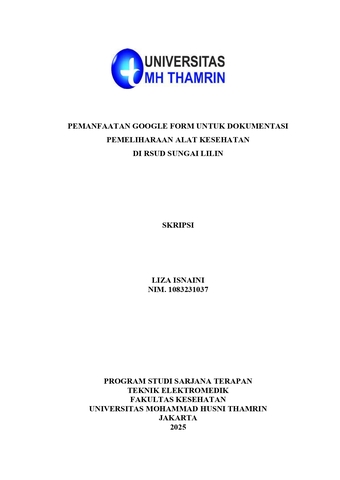 Liza, Isnaini (2025) Pemanfaatan Google Form untuk Dokumentasi Pemeliharaan Alat Kesehatan di RSUD Sungai Lilin. Diploma thesis, Universitas Mohammad Husni Thamrin.