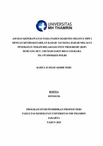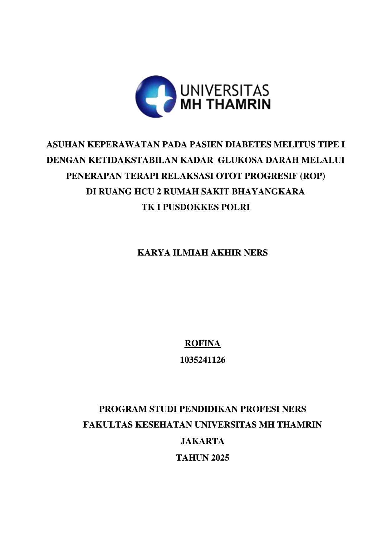 Rofina, Rofina (2025) Asuhan Keperawatan pada Pasien Diabetes Melitus Tipe I dengan Ketidakstabilan Kadar Glukosa Darah Melalui Penerapan Terapi Relaksasi Otot Progresif (ROP) di Ruang HCU 2 Rumah Sakit Bhayangkara TK I Pusdokkes Polri. Other thesis, Universitas Mohammad Husni Thamrin.