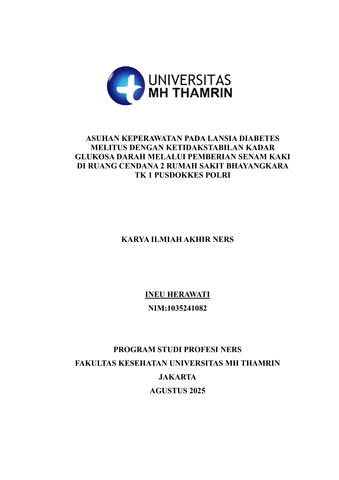 Ineu, Herawati (2025) Asuhan Keperawatan pada Lansia Diabetes Melitus dengan Ketidakstabilan Kadar Glukosa Darah Melalui Pemberian Senam Kaki di Ruang Cendana 2 Rumah Sakit Bhayangkara Tk 1 Pusdokkes Polri. Other thesis, Universitas Mohammad Husni Thamrin.