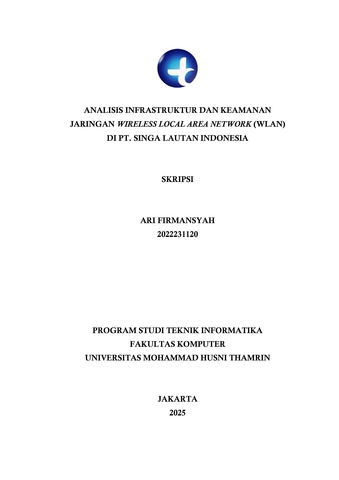 Ari, Firmansyah (2025) Analisis Infrastruktur dan Keamanan Jaringan Wireless Local Area Network (WLAN) di PT. Singa Lautan Indonesia. Other thesis, Universitas Mohammad Husni Thamrin.