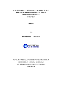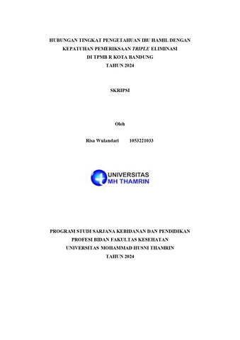 Risa, Wulandari (2024) HUBUNGAN TINGKAT PENGETAHUAN IBU HAMIL DENGAN KEPATUHAN PEMERIKSAAN TRIPLE ELIMINASI DI TPMB R KOTA BANDUNG TAHUN 2024. Other thesis, Universitas Mohammad Husni Thamrin.