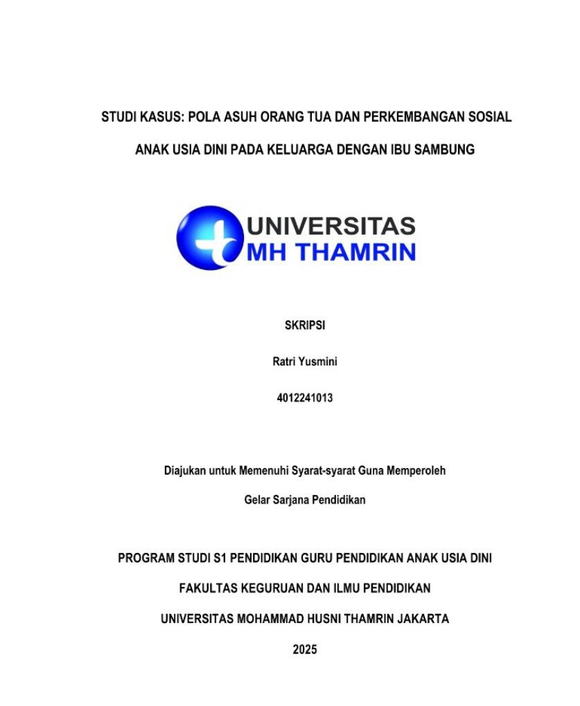 Ratri, Yusmini (2025) Studi Kasus: Pola Asuh Orang Tua dan Perkembangan Sosial Anak Usia Dini pada Keluarga dengan Ibu Sambung. Other thesis, Universitas Mohammad Husni Thamrin.