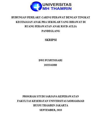 Dwi, Puspitosari (2025) Hubungan Perilaku Caring Perawat dengan Tingkat Kecemasan Anak Pra Sekolah yang Dirawat di Ruang Perawatan Anak RSUD Aulia Pandeglang. Other thesis, Universitas Mohammad Husni Thamrin.