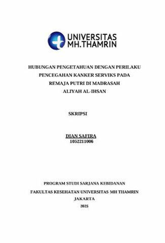 Dian, Safira (2025) Hubungan Pengetahuan dengan Perilaku Pencegahan Kanker Serviks pada Remaja Putri di Madrasah Aliyah Al-Ihsan. Other thesis, Universitas Mohammad Husni Thamrin.