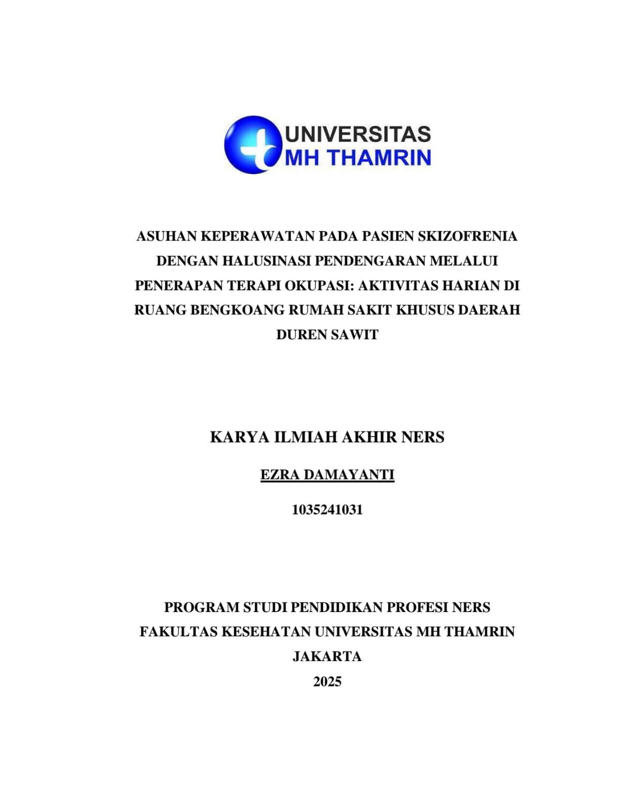 Ezra, Damayanti (2025) Asuhan Keperawatan pada Pasien Skizofrenia dengan Halusinasi Pendengaran Melalui Penerapan Terapi Okupasi: Aktivitas Harian di Ruang Bengkoang Rumah Sakit Khusus Daerah Duren Sawit. Other thesis, Universitas Mohammad Husni Thamrin.