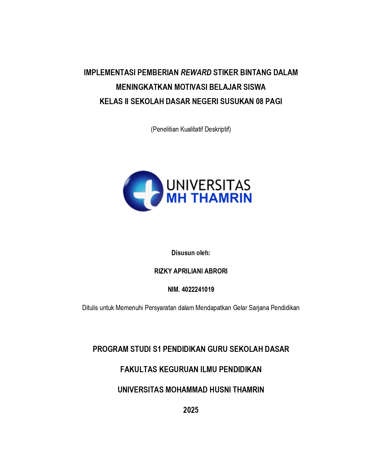 Rizky, Apriliani Abrori (2025) Implementasi Pemberian Reward Stiker Bintang Dalam Meningkatkan Motivasi Belajar Siswa Kelas II Sekolah Dasar Negeri Susukan 08 Pagi. Other thesis, Universitas Mohammad Husni Thamrin.