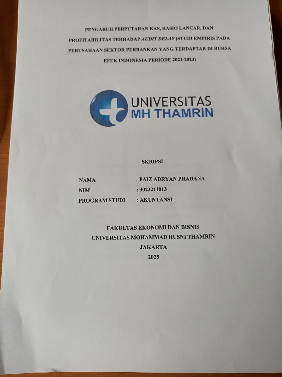 Faiz, Adryan Pradana (2025) Pengaruh Perputaran Kas, Rasio Lancar, dan Profitabilitas terhadap Audit Delay (Studi Empiris pada Perusahaan Sektor Perbankan yang Terdaftar di Bursa Efek Indonesia Periode 2021-2023). Other thesis, Universitas Mohammad Husni Thamrin.
