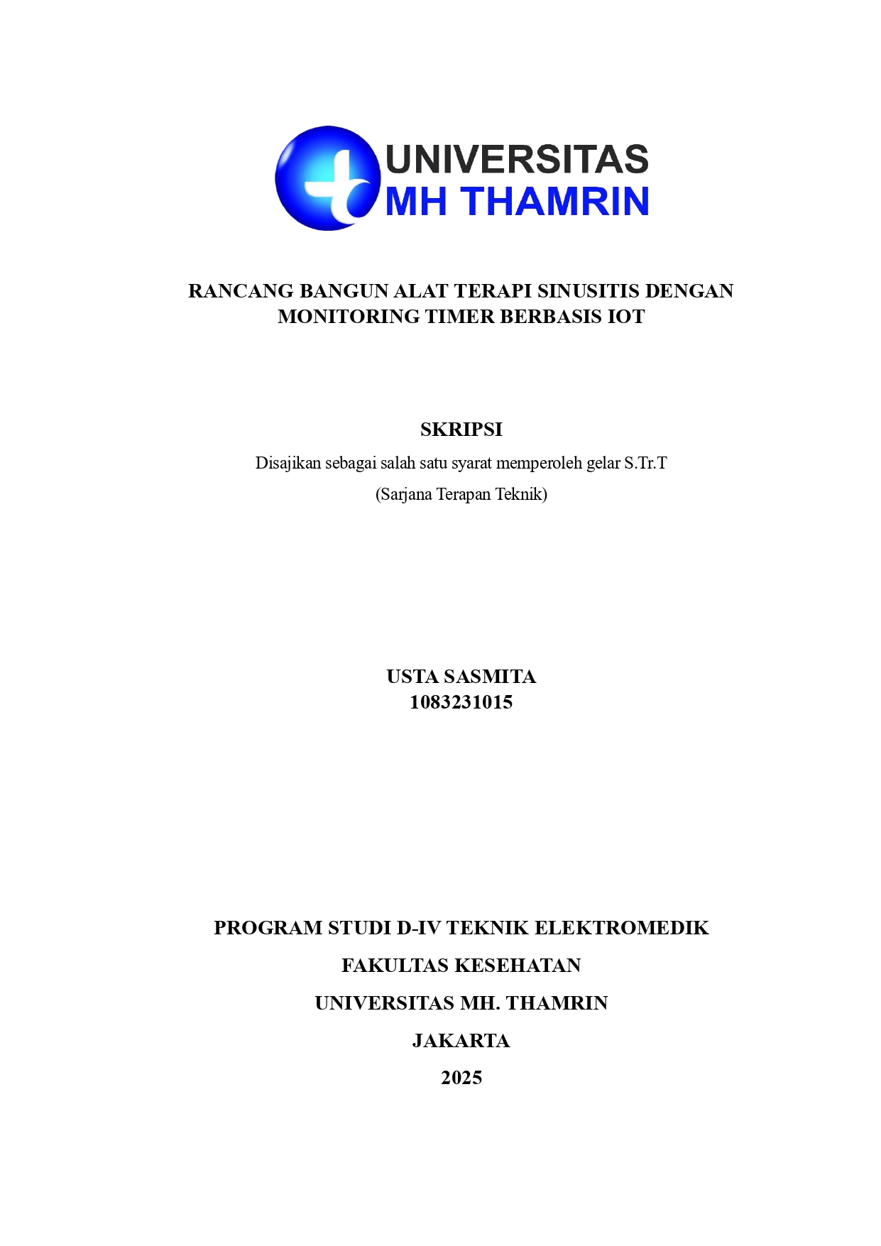 Usta, Sasmita (2025) Rancang Bangun Alat Terapi Sinusitis dengan Monitoring Timer Berbasis IoT. Other thesis, Universitas Mohammad Husni Thamrin.