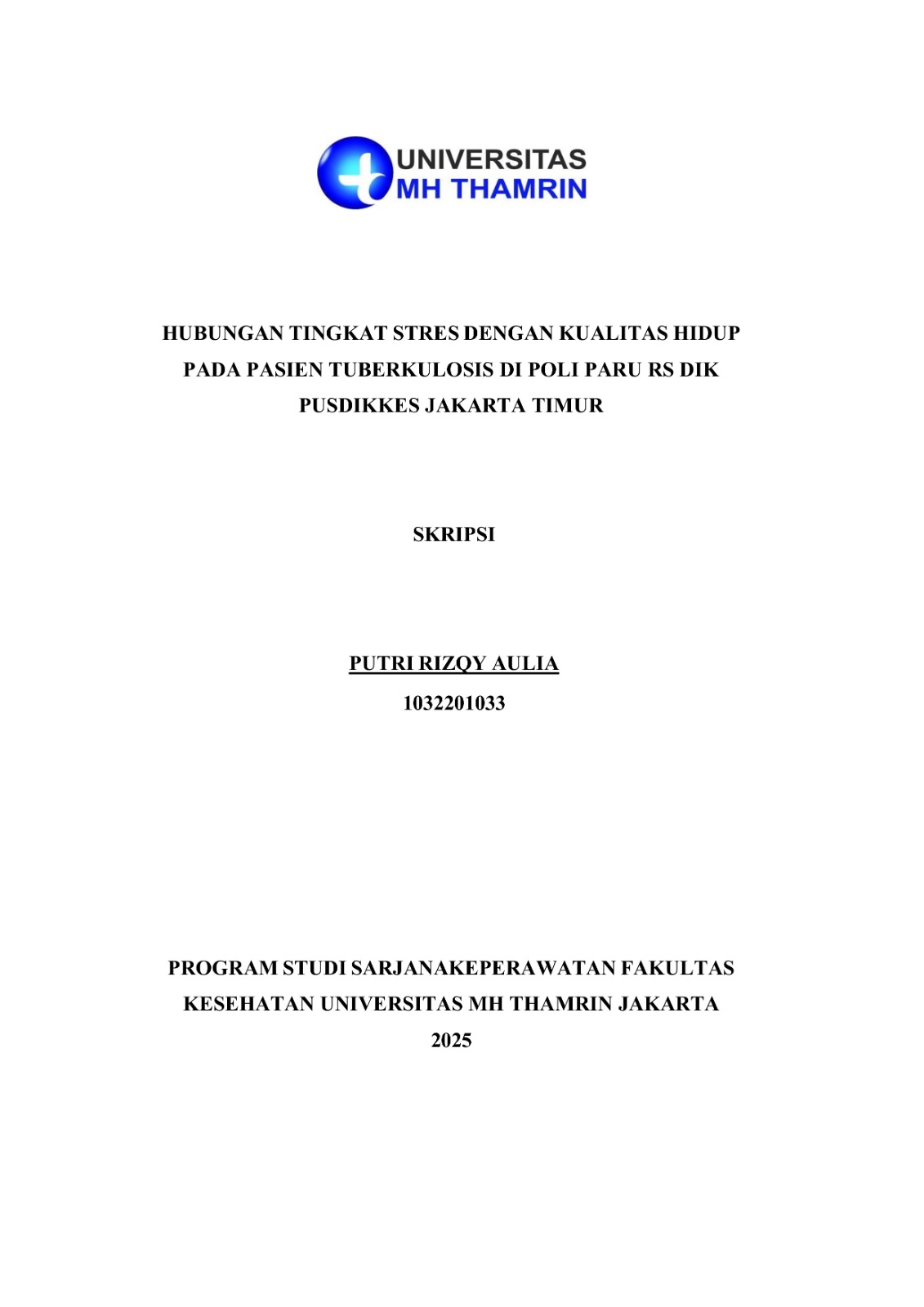 Putri Rizqy, Aulia (2025) Hubungan Tingkat Stres Dengan Kualitas Hidup Pasien Tuberkulosis Di RS Dik Pusdikkes Jakarta Timur. Other thesis, Universitas Mohammad Husni Thamrin.