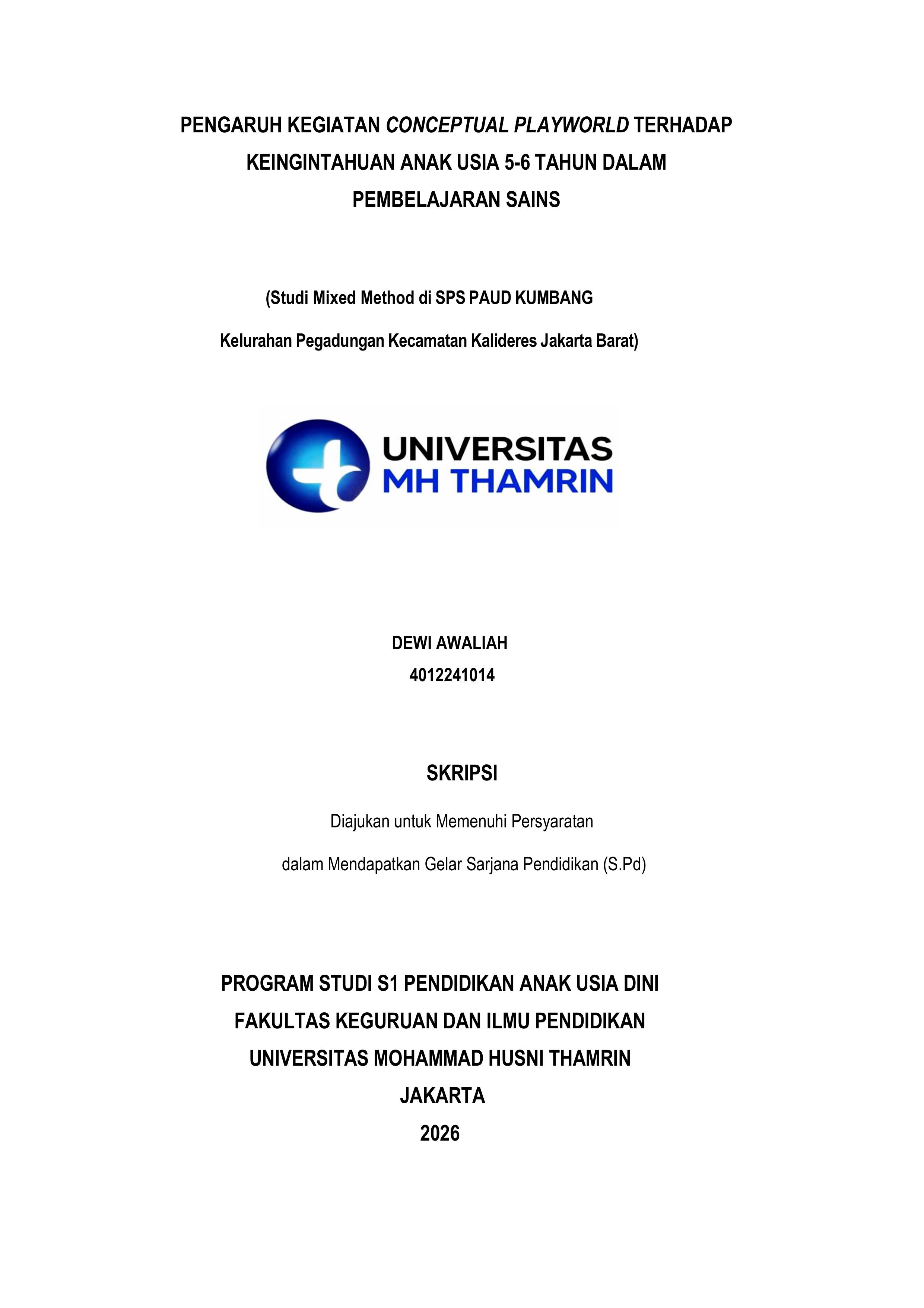 Dewi, Awaliah (2026) Pengaruh Kegiatan Conceptual Playworld terhadap Keingintahuan Anak Usia 5-6 Tahun dalam Pembelajaran Sains. Other thesis, Universitas Mohammad Husni Thamrin.