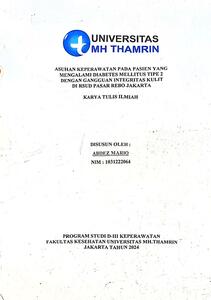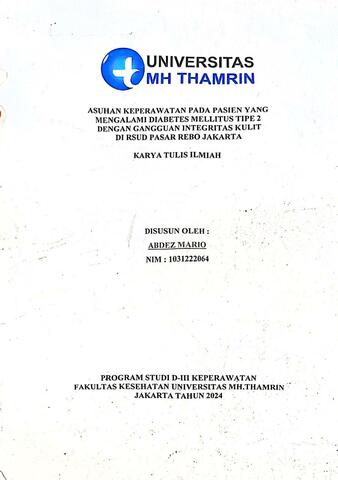 Abdez Mario, Gultom (2024) ASUHAN KEPERAWATAN PADA PASIEN YANG MENGALAMI DIABETES MELLITUS TIPE 2 DENGAN GANGGUAN INTEGRITAS KULIT DI RSUD PASAR REBO JAKARTA. Diploma thesis, Universitas Mohammad Husni Thamrin.