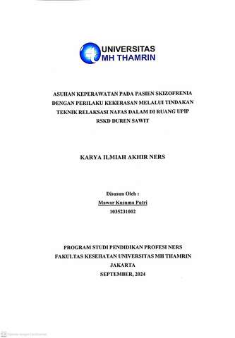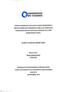 Mawar Kusuma, Putri (2024) Asuhan Keperawatan pada Pasien Skizofrenia dengan Perilaku Kekerasan Melalui Tindakan Teknik Relaksasi Nafas dalam di Ruang UPIP RSKD Duren Sawit. Other thesis, Universitas Mohammad Husni Thamrin.